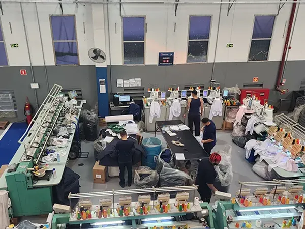 - 35 máquinas automatizadas que reúnem tecnologia norte americana e japonesa com a capacidade de bordar mais de 30 mil peças por mês.